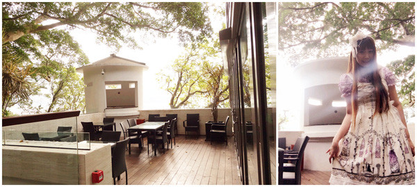 即使是燈也盡量保留了舊式的設計。樓外花木扶疏,幾位外國旅客在晴傘下閒話家常。今天這種惠風和暢的天氣最適合呆坐在長椅上望海。