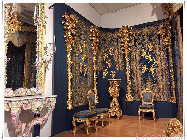 左面的鏡台是非常精緻的陶瓷,小天使和美得不可方物的玫瑰花糾纏著,每一個部份既可獨立細賞,也可以整合慨嘆工匠的鬼斧神工。這種鏡台在路德維希的皇宮-他的家中算是頗常見的。