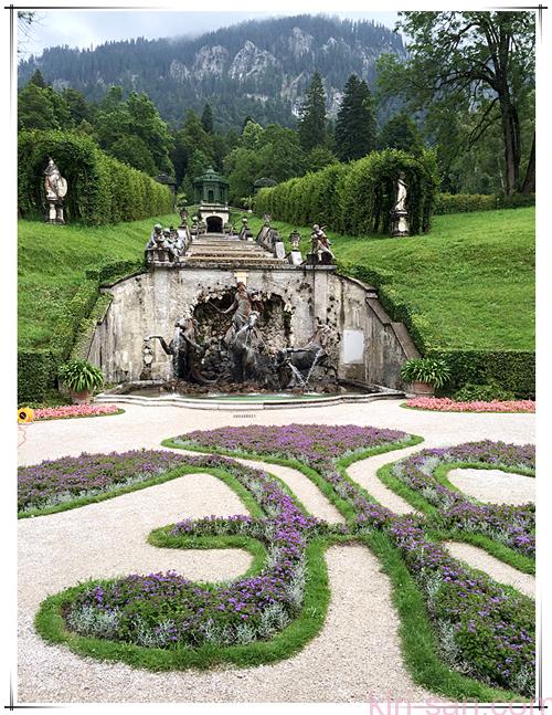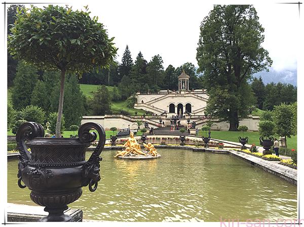 林德霍夫宮Linderhof真的很細小。由於是早上的關係,要拍攝空無一人的相片並不困難。兩邊的花草沒有圍起,德國人信任遊客的自律。修剪漂亮的花草一絲不拘地謹守岡位為小小的花園添上豪華的氣派。