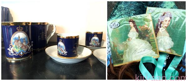 貴氣精美價格親民的咖啡杯子與巴士站側的小店買的德國著名家品Ihr餐巾,上面的是伊莉沙白皇后的肖像。