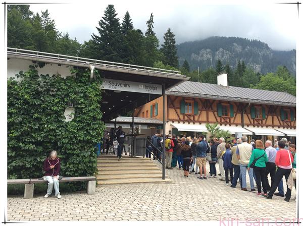 其實在林德霍夫宮Linderhof 十分鐘腳程的地方,人龍已經開始。先買票再拿整理劵,知道了自己的參觀時段再去排隊,德國三座城堡的運作基本上大同小異。旁邊的紀念品店有日語和英語標識,目測遊客以歐洲和日本人為主。