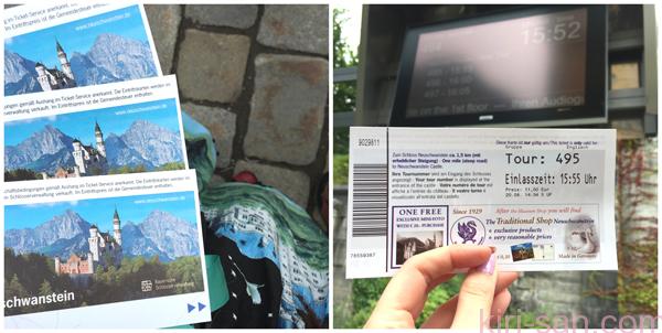 門票上印上了舉世知的新天鵝堡。這是從橋上拍過去的風景,只是2015年8月3日起橋關了,維修完工日尚未有期。